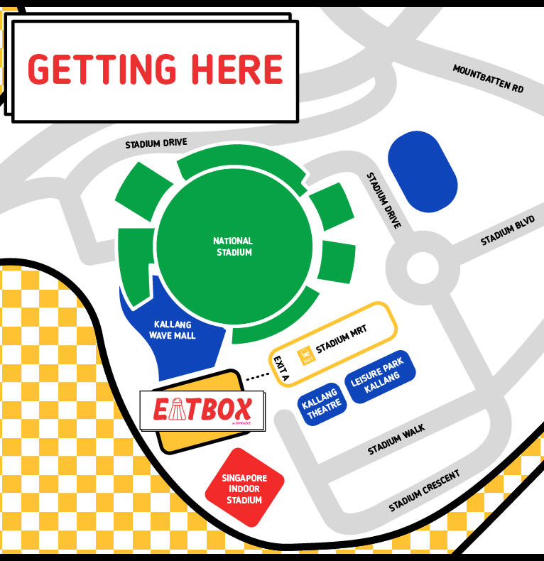 We're located at OCBC Square, right next to Singapore Indoor Stadium where Singapore Badminton Open 2023 is held! You'll be able to spot us near the entrance of Kallang Wave Mall.For train travellers, make your way to EATBOX by heading towards Exit A of Stadium MRT. Or if you prefer to drive, rest assured that there are several parking options to choose from.Find out more from our Instagram @artbox_singapore